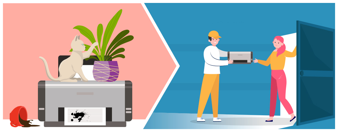 Если принтер внезапно вышел из строя, владелец страховки обращается к нам за помощью. Мы забираем технику, ремонтируем ее в сервисном центре и привозим обратно. Услуга избавляет от необходимости отправляться к специалистам, простаивать в очередях и тратить деньги на транспортные услуги.